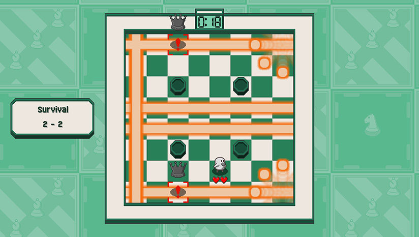 在生存模式中躲避爆炸。你将面对一波接连一波棘手的爆炸攻势。一开始的难度还非常简单,但到了后面你需要一边应对地狱般的皇后爆炸轨迹,一边破解国际象棋棋子谜题。