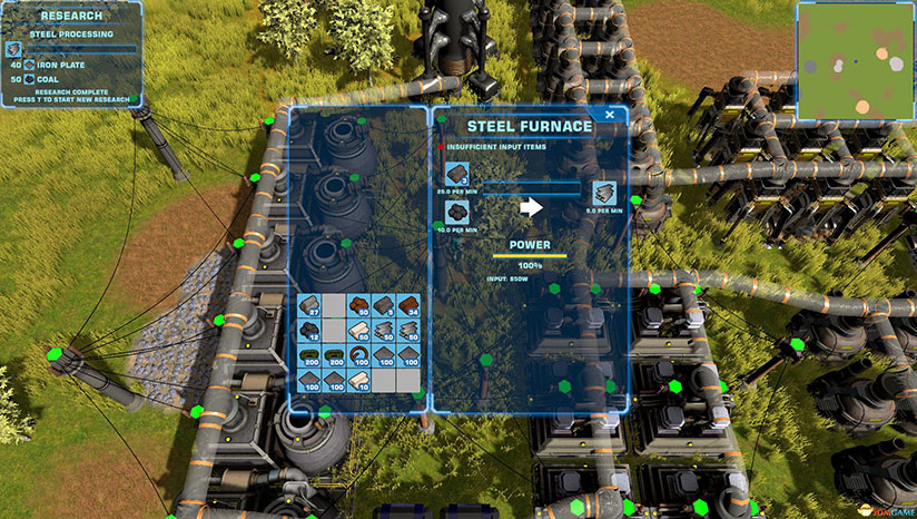 在其中建造建筑物并使用运输管将它们连接起来。物品将流经运输管并自动找出去向。建立你的工厂来建造一艘太空船并返回家园!