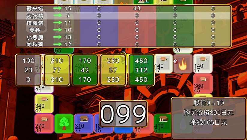 《东方钱股票店》是由ikasumiyaki制作,slringal发行的一款休闲益智游戏,东方、大富翁、炒股三者结合变成了这款游戏,如果这些元素你都喜欢就不容错过了,最多可以四人游玩,你可以投掷骰子来选择买股或者买商铺,同时注意对手的动向,让自己赚的盆满钵满同时对手破产,这是最终的目的。