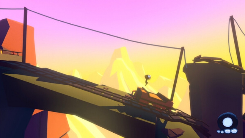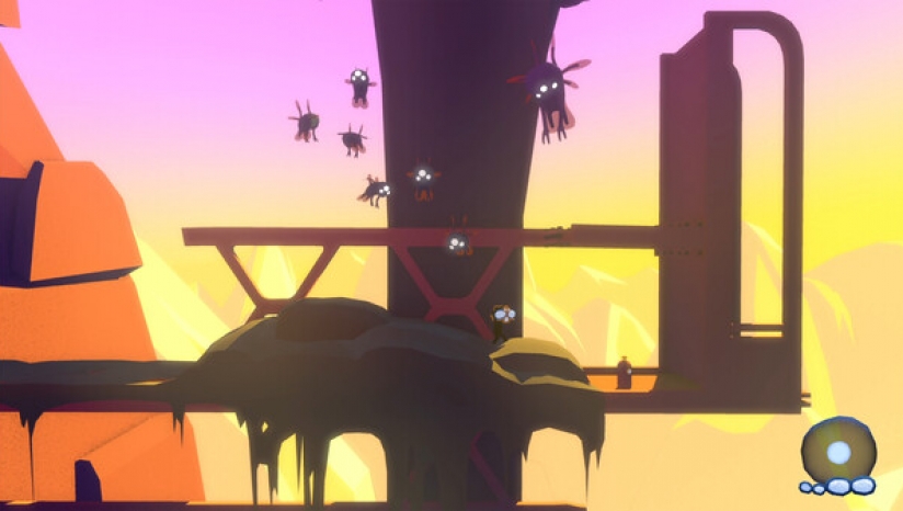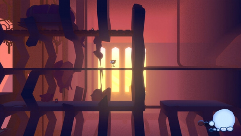 美术风格融合《Limbo》的暗黑压抑与《茶杯头》的大胆色彩,机械废墟与有机生物交织的场景充满张力。角色设计极具辨识度,脑袋的充气状态通过体积变化直观反馈,机体的金属质感与环境光影形成鲜明对比。