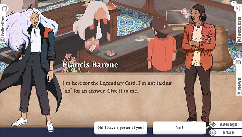 《卡牌之王》是一款商店经营模拟游戏,你将在海边开一间卡牌商店:购买、交换、出售和收集卡牌;获取社区声誉并完成商店目标;解锁新的装饰并举办精彩活动,打造当地一流好店,吸引各界顾客光临。