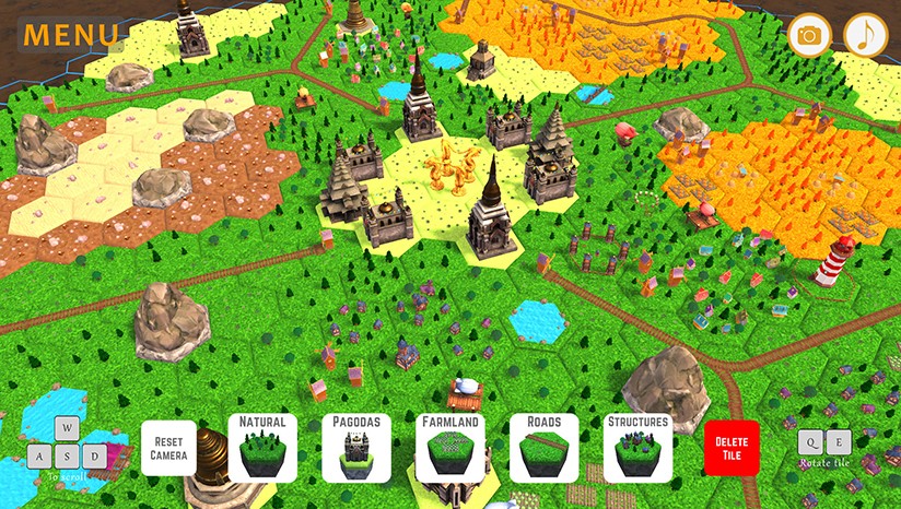 这是你的世界。从各种3D网格的菜单中实时选择,创造多彩的风景和村庄,没有时间限制或锁定内容。轻松建造广阔的森林、荒芜的沙漠、复杂的村庄、高耸的宝塔城市、蜿蜒的河流和崎岖的山脉。通过完全的WASD移动和旋转相机控制,你可以轻松获得你想要的准确角度和位置。在建造模式中,基于网格的可能性是无穷的。包括屏幕截图功能。
