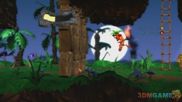 这款游戏支援单机双人合作。玩家可以透过按键与场景中的机关互动,像是让Ooga人在轮子上狂奔,以打开楼梯上方的闸门。