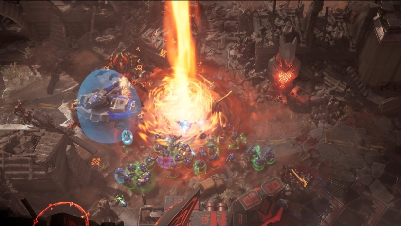 《风暴之门》是由前暴雪核心团队组建的Frost Giant Studios开发、采用虚幻引擎5与自研SnowPlay技术打造的免费即时战略游戏,支持4K分辨率与全球跨平台联机,凭借64-tick服务器响应速度和回滚网络技术实现毫秒级操作反馈。游戏设定在人类文明濒临灭绝的科幻奇幻宇宙,玩家可操控机械化的“先锋”人类、恶魔军团“炎魔”或科技至上的“天族”,围绕地球展开三方混战。战役模式以“地球灰烬”为开篇,包含12个任务与分支剧情,每年定期更新章节;合作模式支持3人组队对抗AI,内置“电脑伙伴”辅助系统自动处理生产、采集等机械操作,降低新手门槛。