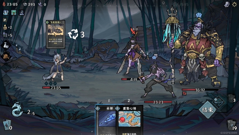 战斗中每回合消耗行动点(默认2点)出牌,角色机制差异显著。例如,莫三依赖“怒气”强化攻击,小川需管理“弹药”资源,阿紫操控毒虫召唤物,龙女则在人形法术与龙形态啃咬间切换。