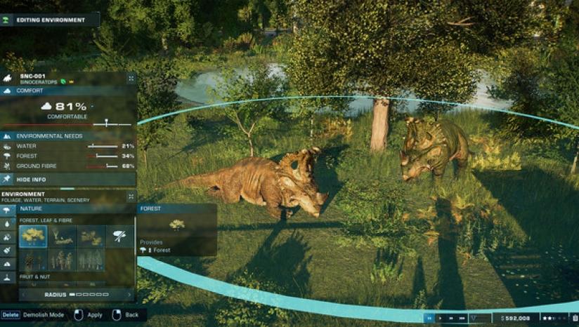 游戏中有超过75种史前物种,玩家可以在遗传基因组层面上改变生物特性,改善恐龙的属性,或者改变它们的肤色和花纹颜色,使其更加独特。同时,要根据不同恐龙的需求,为它们打造适宜的生活环境,如定制鸟笼、建造不同类型的围栏等。