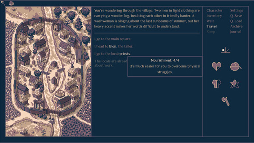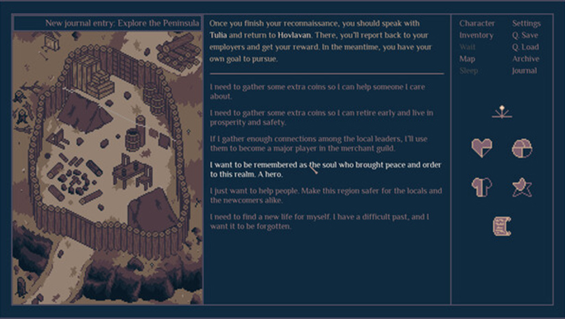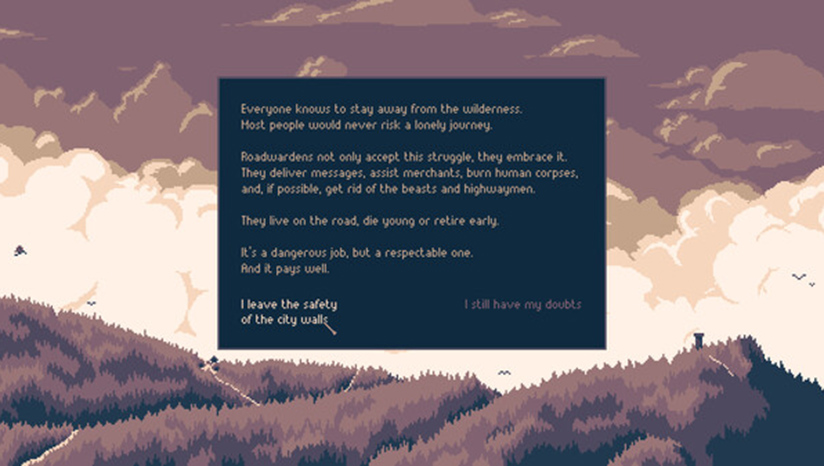Roadwarden 是一个基于插图的文本角色扮演游戏,它使用等距像素艺术并结合了从角色扮演游戏、视觉小说、冒险游戏和互动小说中借鉴的机制,例如库存谜题、对话选择、角色能力和进程、生命值。简单的生存机制。或受游戏时间限制的任务。