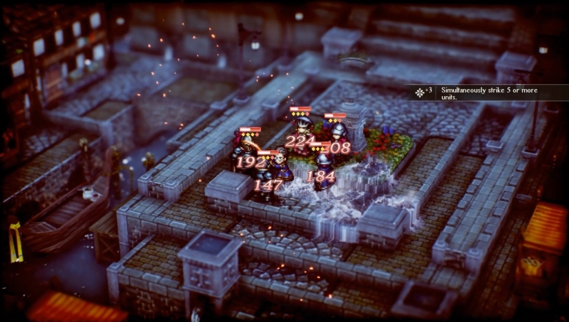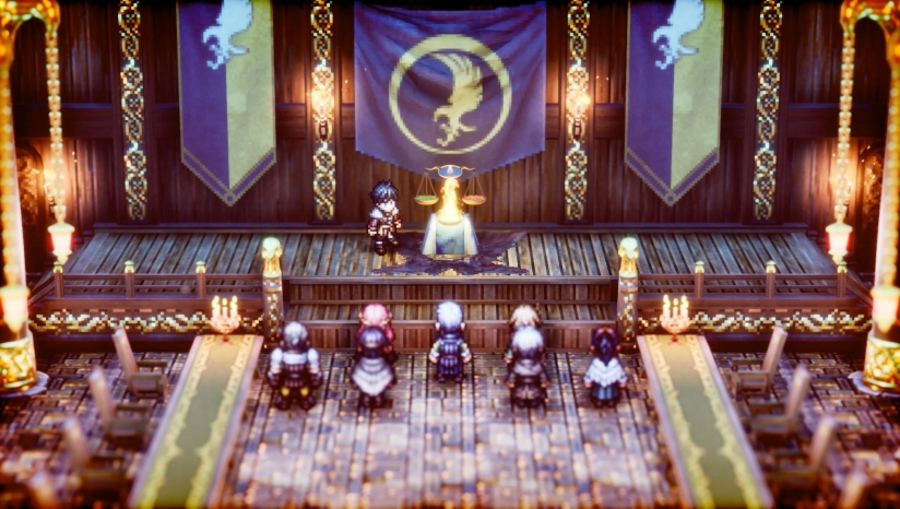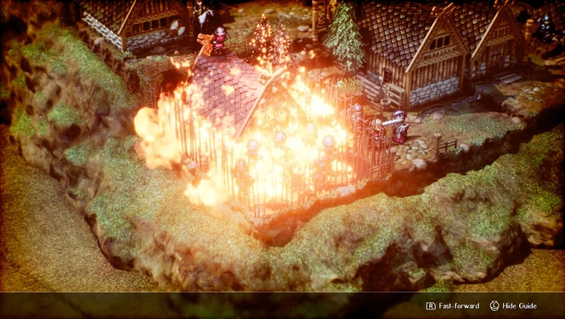 采用SE专利“HD-2D”技术,融合16-bit像素角色与3D动态光影场景。战场支持360光影场景。战场支持360度旋转缩放,地图兼具美学与战术可视性。Switch版在4K屏显稍模糊,Steam版优化更佳。配乐由千住明(代表作《钢之炼金术师》)创作,强化中世纪史诗氛围。