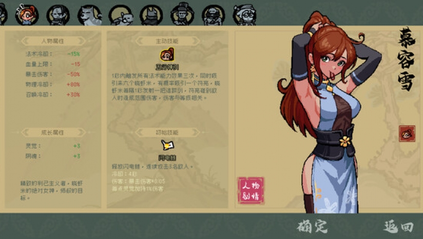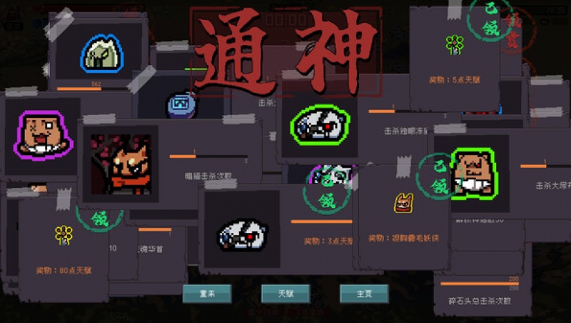 设有各种成就,完成可获天赋点奖励,用于解锁增加初始银两数量、增加属性、提供额外复活次数等增益效果。