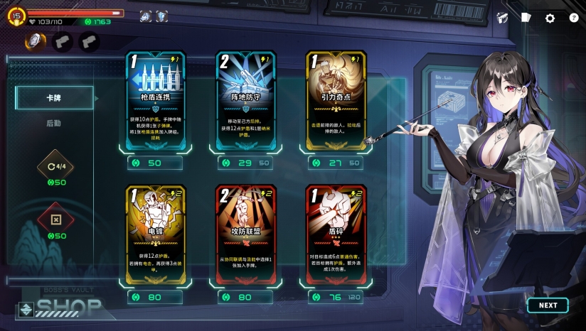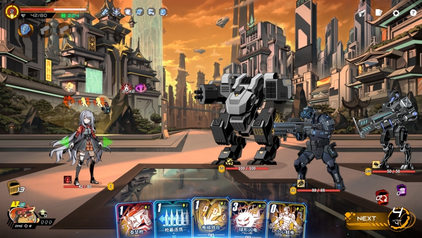 收集超百张卡牌,形成电击流、护盾反震流、武器充能流等流派,卡牌间存在联动效果(如电击流需搭配“避雷针”转化负面效果)。
