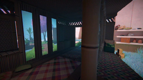 玩家要在各个关卡场景中探索,与场景中的留声机、椅子等道具互动获取线索和信息。此外,还需寻找并激活关卡中的传送器来通关。