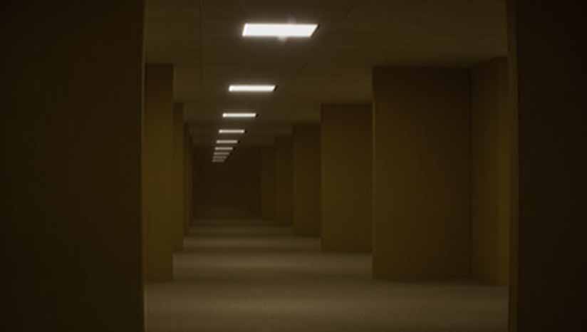 如果你不小心,在错误的地方‘打断’现实,你会发现自己身处幕后,这个地方只不过是潮湿的旧地毯的气味、疯狂的黄色阴影、荧光灯的背景音伴随着地狱般的嗡嗡声和巨大的空荡荡的走廊和房间,随机地支离破碎,让你自己发疯。