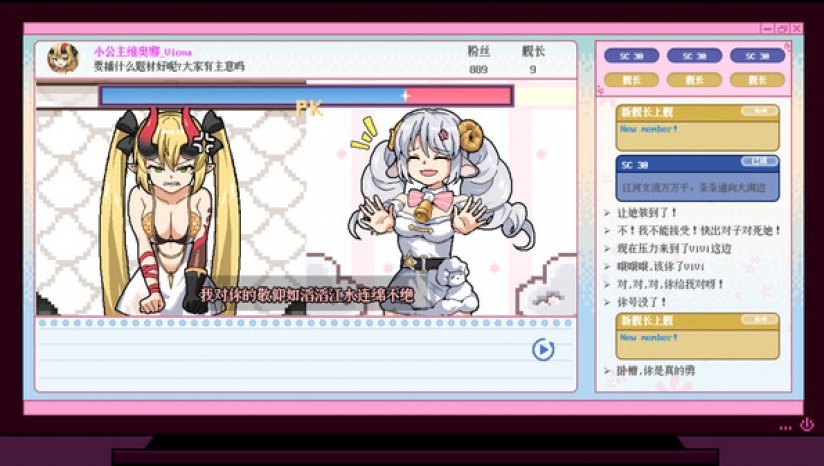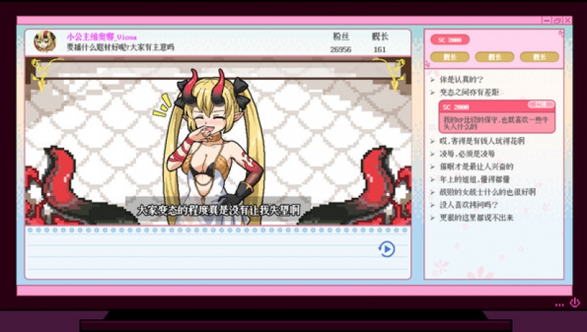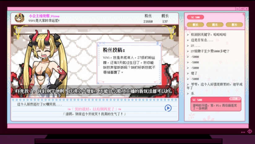 游戏采用像素风格画面,这种风格给人一种复古而温馨的感觉。像素画面的细节处理精细,色彩搭配鲜艳,营造出了一个充满活力和想象力的虚拟主播世界。