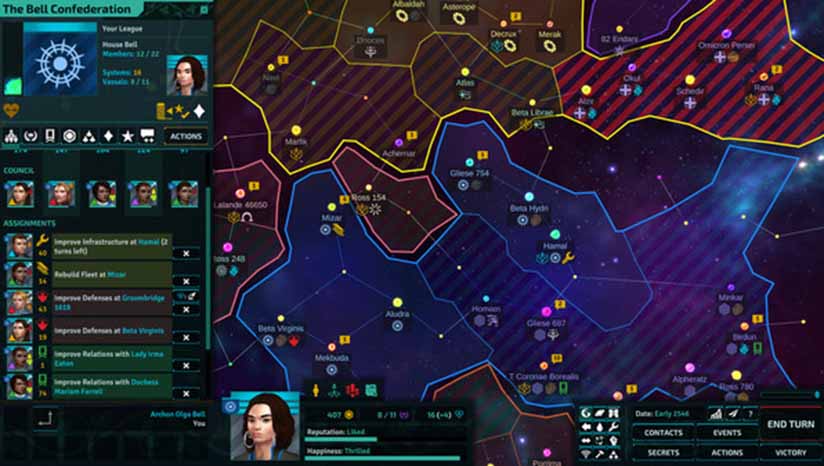 当地球母亲的灾难性破坏使银河系进入一个新的黑暗时代时,人类刚刚在太空迈出了第一步。几个世纪后,这些少数幸存的殖民地已经稳定下来,成为一个简单的封建社会,无法理解或推进他们赖以生存的技术人工制品。贵族精英之间的相互争斗决定了人类碎片的命运。作为一个恒星系统派系的领导者,你必须寻求确保你的王朝的生存和繁荣。扩张你的帝国,牧养你的桀骜不驯的附庸,建立政治联盟,在议程、政治阴谋和社会义务的网络中导航,成为银河系的主导力量。