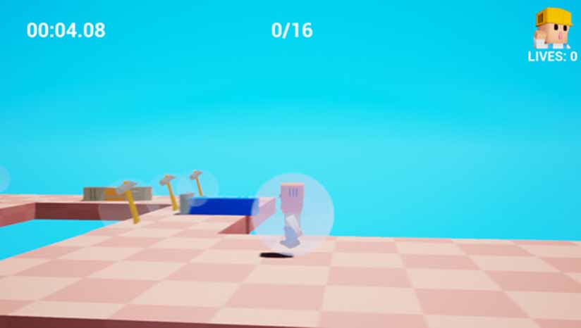 在这场滚球比赛中,球员都是内线球员。每个级别的球员的任务都是尽快达到目标。有一些困难的控制和障碍,比如旋转立方体和推平台,它们会把玩家推出地图,然后玩家就会死亡。每关收集20个锤子,玩家可以获得额外的生命。每一个关卡的末端都有锯子,这给玩家带来了巨大的成就。游戏可以在单一模式下进行,玩家可以玩他想要的任何级别。在故事模式中,玩家从1级开始,有3个生命,可以通过收集锤子获得更多。故事模式玩家可以连续玩每20个关卡,但如果玩家失去了所有生命,他需要从1级开始重新开始游戏。