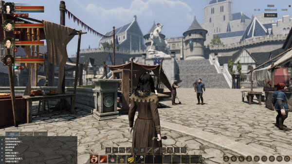 1.0版本对UI进行全面重置,采用蓝色基调强化奇幻氛围,并优化加载速度与帧率稳定性。环境建模细致还原中世纪风貌,但捏脸系统较为简陋,随机生成的角色常被玩家调侃为“古神级颜值”。音效方面,武器碰撞与风声营造出临场感,但背景音乐存在感较弱,战斗缺乏节奏变化。