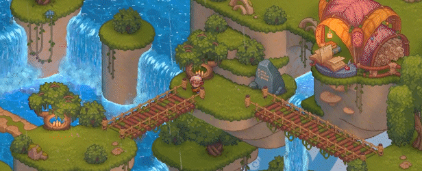 游戏中的角色动作流畅,如约德尔人的行走、采集、制作等动作自然,还有烟花绽放、魔法特效等动态元素,增强游戏的趣味性和吸引力。