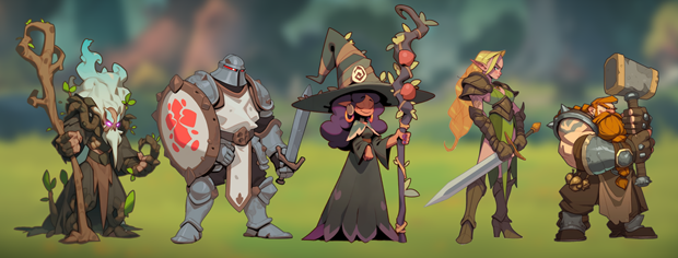 可供选择的勇者共7个。每个勇者都有一个特技和一张专属卡牌。玩家可运用策略巧妙搭配勇者和职业。