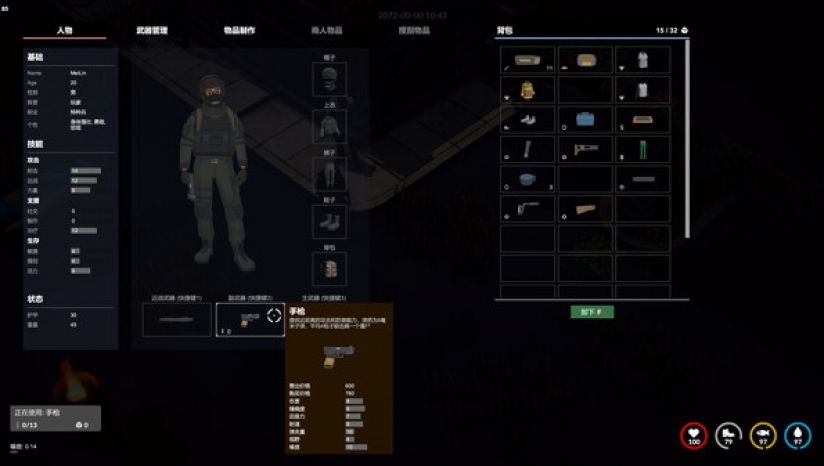 资源管理:玩家需要在面对物资匮乏的威胁下,小心管理食物、水源、弹药和其他必需品。