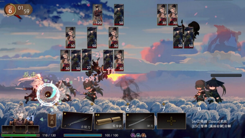 这是一款将节奏点击和肉鸽生存结合的游戏,当敌人攻至面前时,点击按键进行格挡和反击(精准格挡)。