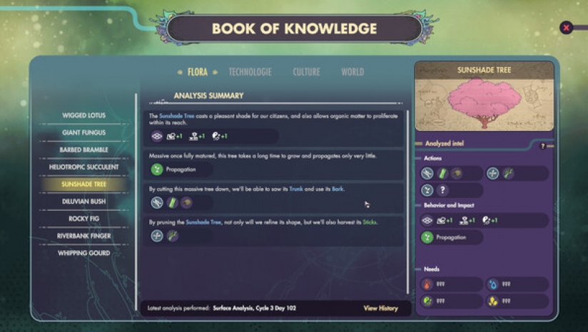 探索是推动游戏进程的重要方式。走得越来越远,发现的地点自然越来越多,还有机会结识其他幸存者,说服他们搬进你的城市。此外,途中会出现记载着无价知识的石板,更有未知植物品可供移栽。