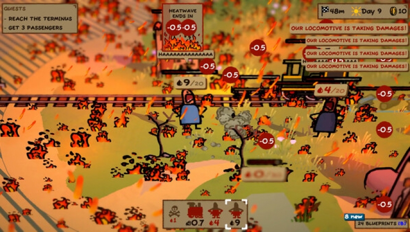 给火车加煤,建造新的车厢和新的设备,以抵御基本上所有的危险。随着游戏的进行,时间和距离的增加,游戏会越来越难,因此请尽量安排自动化运行。