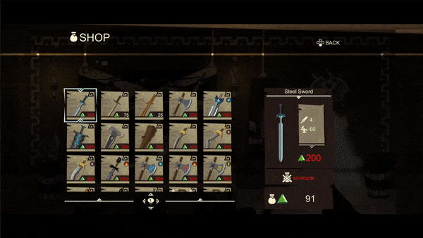 用丰富的武器装备莱夫。无论是短剑、锤子、斧头还是长枪,可选范围非常广泛。你还可以收集敌人掉落的所有武器,用其对付敌人。同时注意武器和装甲的属性能力,火、冰、雷都有着不同的优缺点。
