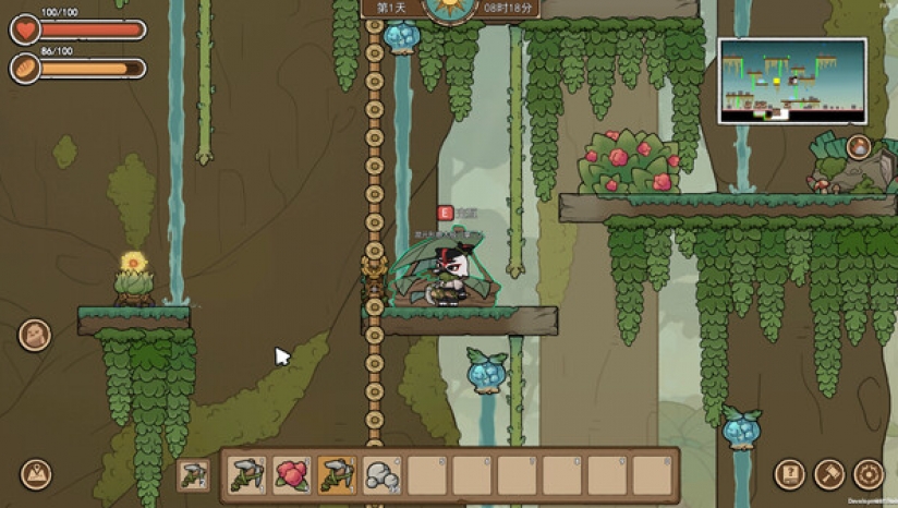 在圣树上收集资源,制造工具和武器,新的资源和新的科技都会解锁更多可制造物品,不断提升才能生存下去!