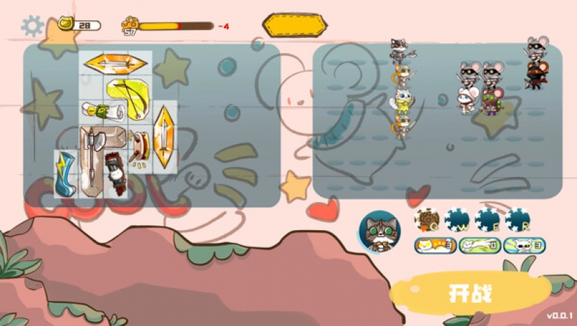 《猫鼠大作战》是由JohnHang制作并发行的一款融合背包管理和自走棋战斗的轻度roguelike游戏。游戏中玩家通过扩展背包,摆放、合成、收纳召唤石,组建强大的猫猫军团,同时提升英雄自身技能,提升战力,击败沿途的老鼠大军。