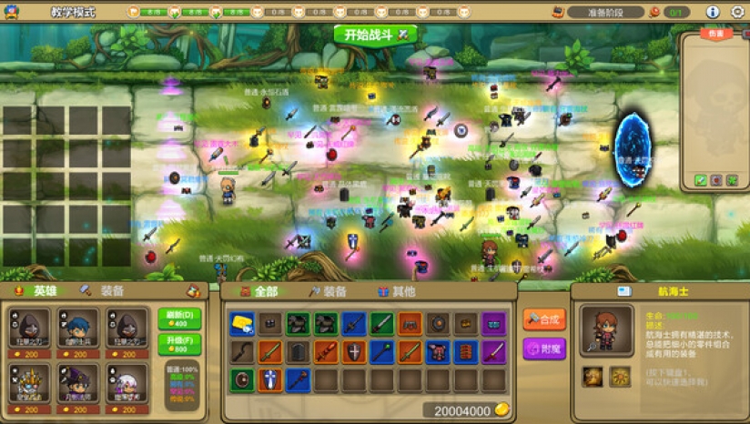 在这款游戏中,装备系统是一个极为丰富和多样化的核心特色。玩家游戏中收集各种装备,包括剑、刀、杖等等,这些装备拥有不同的品质和随机属性。同时装备还能够附魔以添加套装效果。通过给英雄配搭合适的装备可以大幅度提高战斗力。