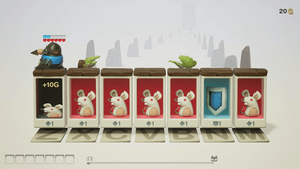 在7个老虎机式的键位上展开的RPG冒险!操纵7位主角,在7层随机关卡中不断挑战不同的怪物、boss,解锁新的内容吧。你能前进多远?看看你是ROLL到宝物还是怪物!每次按下键盘,都是全新的挑战。