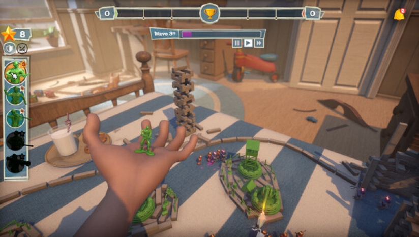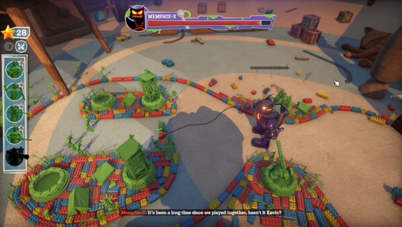 然而,你的旧玩具们却不太好相处。他们不再受到照顾,并被遗忘。那么接下来会发生什么呢?他们将联合起来对抗你,并攻击你的新玩具,所以要做足准备。不用担心! 你很幸运,因为你的新玩具是一群绿色士兵。不过他们仍然需要你的帮助! 控制、强化并击败敌对势力!,小心点,你遇到的敌人可能不是你的旧玩物!