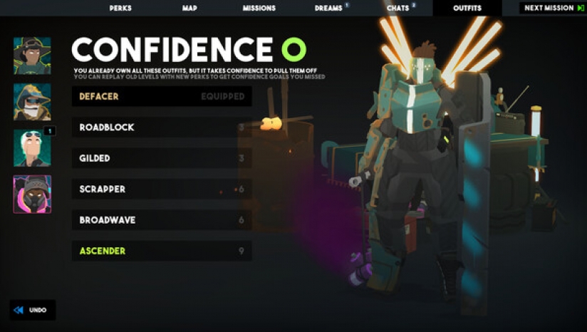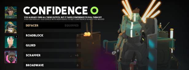每个角色都已经拥有了他们所有的可解锁装备——他们只是没有把握穿上它们。角色通过完成可选的额外目标来赢得更多把握,这些目标反映了他们的优势和价值。
