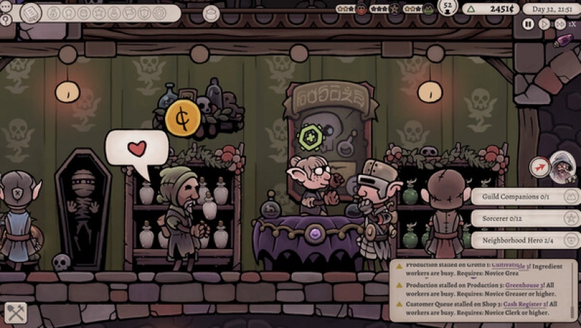 1、巫术题材的大亨游戏:建立和发展你自己的魔法商店。