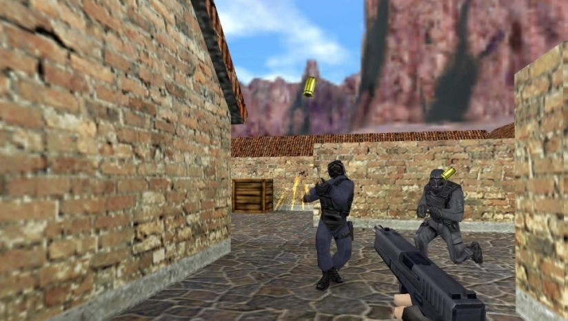 由于游戏采用的是《半条命》的游戏引擎,所以对于游戏的光影效果、画面细节、音乐音效也无需做任何过多的介绍。虽然CS的游戏模式与著名的警察模拟游戏《霹雳小组》系列颇为相象(其最新代表作品为当时奥美电子引进的《霹雳小组3》),但两者本质上还是有很大差别的:在一个个《霹雳小组3》的任务场景中,SWAT队员所要面对的只是由电脑人工智能控制的匪徒,而CS中代表正义的反恐怖突击队员所直面的是“人类匪徒”的挑战。因而游戏在选择时下流行、极具“票房价值”的反恐怖活动作为游戏题材,并以网络多人游戏模式作为唯一的游戏方式,再配以Half-life 功能强大的游戏引擎,难怪很多接触过该游戏的玩家们的“第一试玩感觉”就是:这有可能是世界上最好玩的电子竞技多人游戏。所有玩家在第一次进入游戏后,想象着眼前立刻将出现一幅激烈的战斗场景。但事实正相反,在玩家眼前的是一个购物模式:每个新进入的玩家都将获得一定数量的金钱,你可以使用这些金钱去购买自己最称手的武器。当然了,你所能购买的武器种类将受到你所选择的一方的限制,就比如说警察是不可能扛着“臭名昭著”的AK-47突击步枪上街执勤的。如果你手头宽裕的话,你还可以购买一些诸如头盔、防弹衣之类的防具。