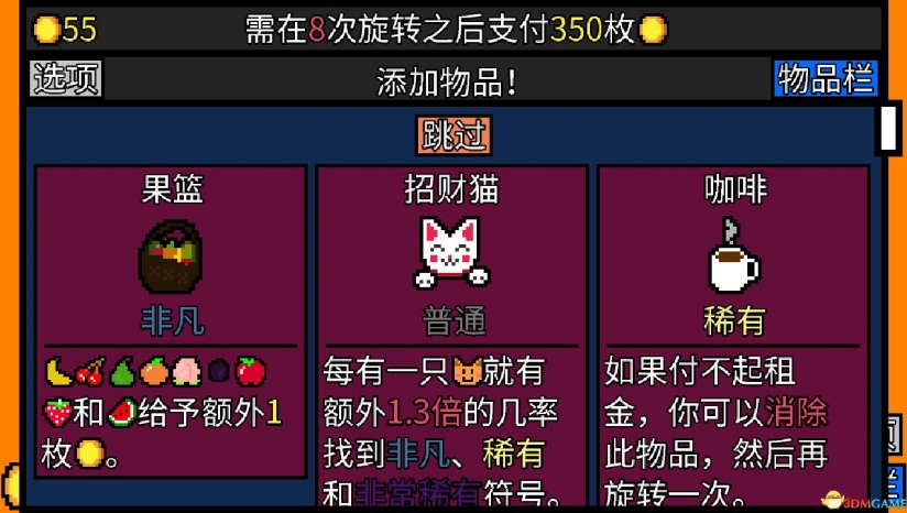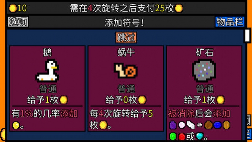 在《幸运房东》中,玩家扮演一名租客,需要通过公寓内的老虎机赚取房租。老虎机的机制与普通老虎机不同,所有符号都能获得奖励,将符号组合在一起还可能获得额外奖励。游戏围绕老虎机展开,玩家在每个回合通过转动老虎机来赚取金币,以支付房东的房租。玩家可以在转动后从三选一的方式选择新符号,不断丰富自己的卡组。游戏中有多种流派玩法,如扑克流、花流、水果流等,玩家需要根据不同的符号和物品效果,制定策略,组合出强大的卡组。