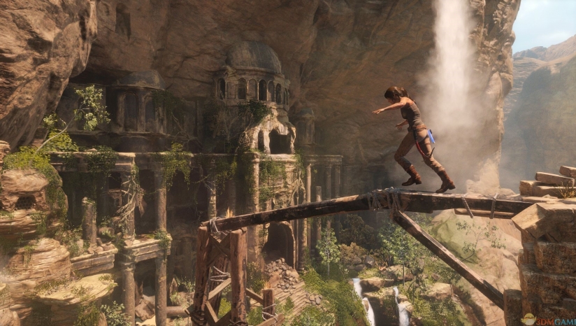 游戏画面精美绝伦,有深景画面的清晰度和立体感,近景的细节刻画和渲染也十分细腻。光影效果令人满意,如衣服反射非常真实。在场景设计上,从暴雪肆虐的悬崖峭壁到湿雾笼罩的温泉丛林,再到残破壮观的古代遗迹,都刻画得精致大气。劳拉在游戏中还有各种小动作,增加了真实感。