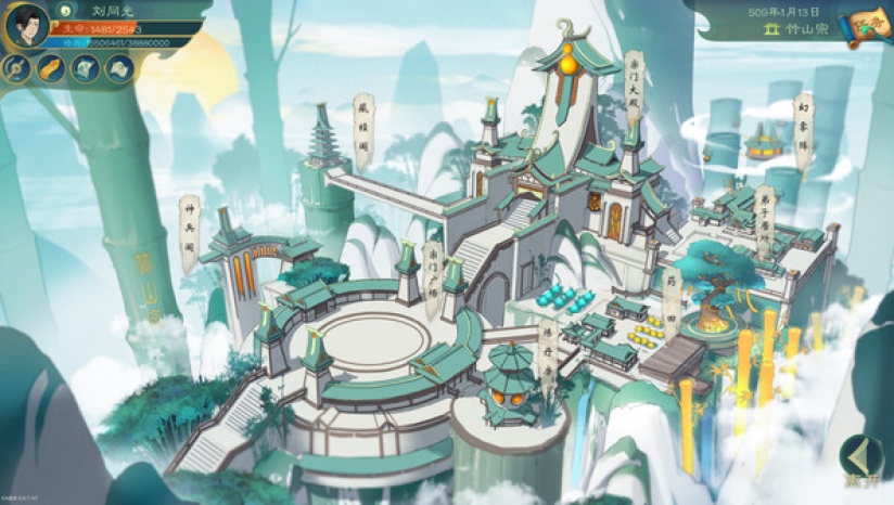 游戏中的卡牌战斗是核心玩法之一。战斗以“卡牌式”回合制进行,卡牌代表天地五行灵气。玩家需收集功法和神通组建自己的build,通过不同的五行灵气牌排列组合打出法术。战斗中有策略性,五行相生相克能产生不同伤害与combo效果,各门派还有独特的套路调配,如防御叠毒、御剑攒剑气等。武器也类似炉石传说英雄技能,主动使用可使伤害质变。