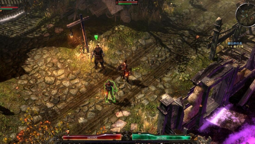 游戏采用灰暗的色彩气氛,画面里尸堆如山、房屋烧毁残败。有树叶飘落、下雨、雾气等渲染效果,打击感和音效都不错,血液溅出和怪物死亡后的地面染色让战斗更加真实,背景音乐也为时代背景渲染出十足的力度。