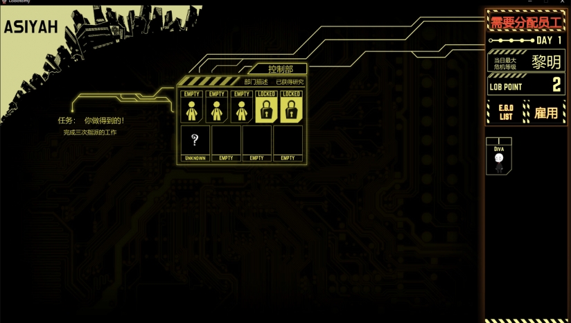 在脑叶公司中,玩家扮演一位怪物管理公司的主管。作为主管,玩家需要负责管理公司的各个部门,收容和管理各种被称为“异想体”的怪物。玩家需要制定策略,派遣员工对异想体进行工作,收集能源,以维持公司的运营。同时,玩家还需要应对各种危机事件,如异想体逃脱、员工死亡或陷入恐慌等。玩家的决策和管理能力将直接影响游戏的进程和结局。