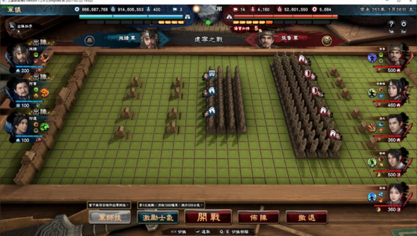 核心战斗系统变化较大,战前“军议”阶段可安排部队位置形状、提升士气,军师技体现策略性。战场表现宏大,同屏士兵数量增多,玩家可微操武将移动和攻击。每名武将有两个主动技能和一个大招,部分高级兵种附带主动技能,且兵种间存在克制关系。