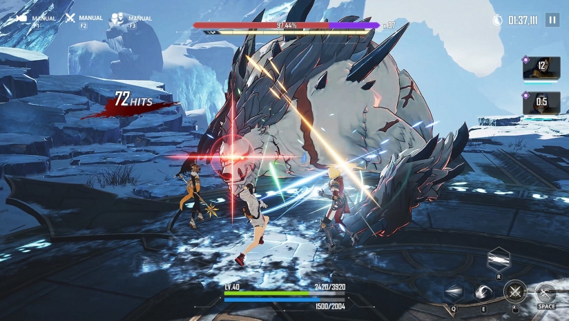 游戏采用3D动作类玩法,战斗动作丰富多样,玩家可根据武器与技能的组合,创造出千变万化的帅气招式。在战斗中,玩家需通过极限闪避躲过怪兽的攻击,并在刹那间利用QTE技能命中敌人,从而拿下致命一击伤害。