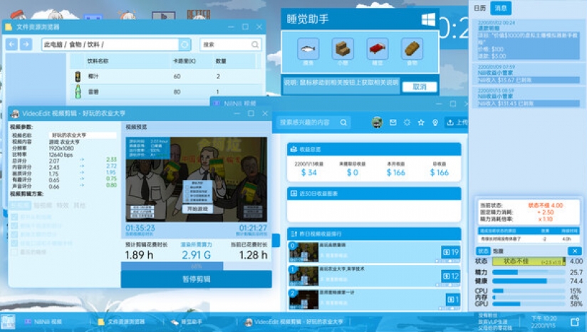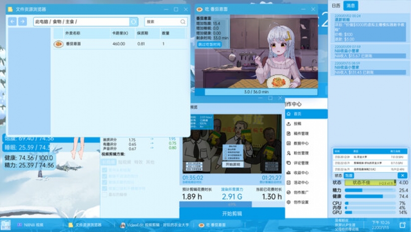 简中《虚拟主播模拟器》是一款模拟经营类游戏,让玩家体验虚拟主播的生涯。游戏背景设定在虚拟的网络直播世界,玩家扮演主播,从无名小卒努力成为知名主播。游戏玩法丰富,玩家可制作视频、直播互动、升级设备、管理体力健康等,还能兼职赚钱。游戏特色在于提供接近真实的经营体验,支持MOD与创意工坊,玩家可自定义大量内容。画面表现上,虽无顶级画质,但能满足基本视觉需求,界面简洁,易于操作。