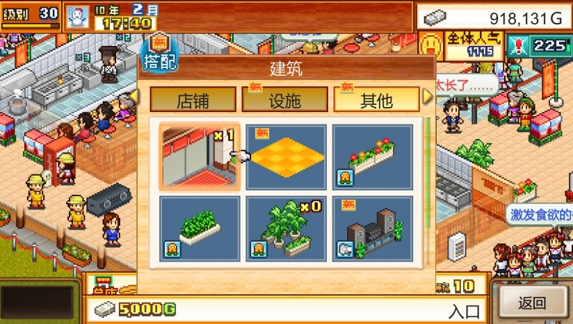 随着游戏的进行,玩家可以通过投资计划窗口开设分店,扩大总店和连锁店的规模。