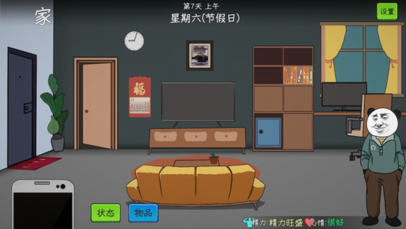 采用独特的画风,主角的脸会随着剧情和对话变换成不同的熊猫头表情包,增加了游戏的趣味性和搞笑氛围。