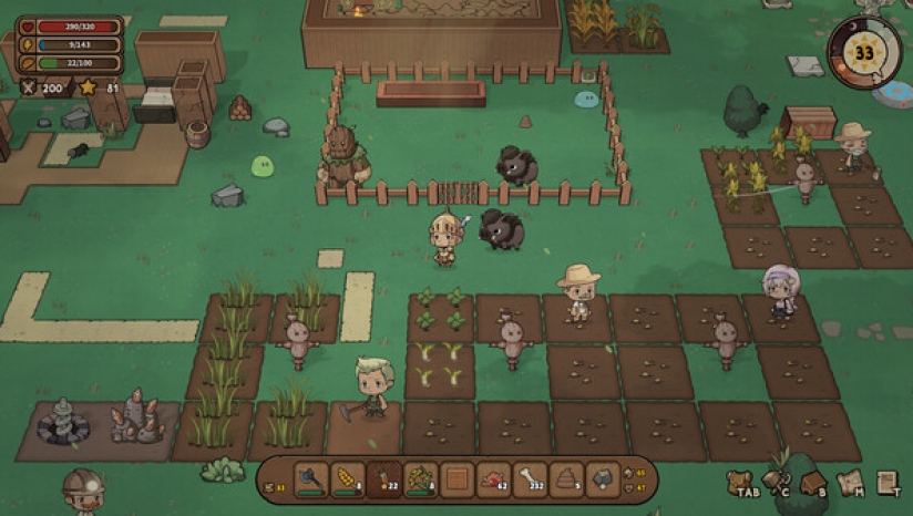 玩家可以进行开垦农田、蓄养动物、砍树挖矿、采集资源等活动,并利用收集到的资源建造房屋和各种设施,如商店、居所、酒馆、神像等。