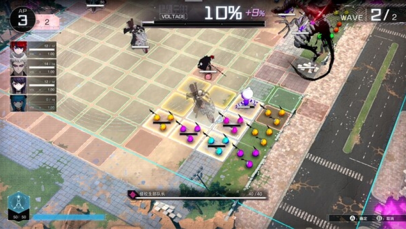 角色的行动以“AP(行动点数)”来管理,AP消耗殆尽后,角色将进入疲劳状态,移动范围被限制,需与其他角色配合进行战术调整。