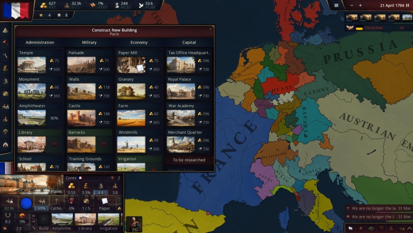 有48种资源,每一种都为最大的生产者提供独特的报酬。有黄金生产和税收制度。玩家要升级产金省份,合理调整税率,建造行政建筑,增强资源采集能力。