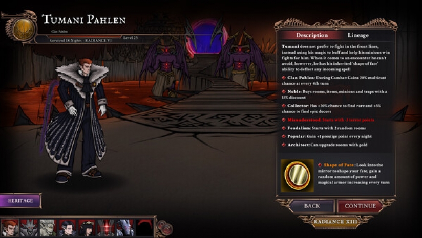 7、在12 个难度级别的三个场景中经受考验,努力生存并取得进步。积累遗产点数,增强领主的初始属性和技能,解锁新城堡和每个领主独有的天赋。