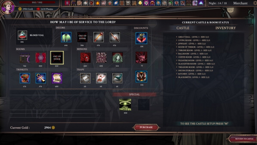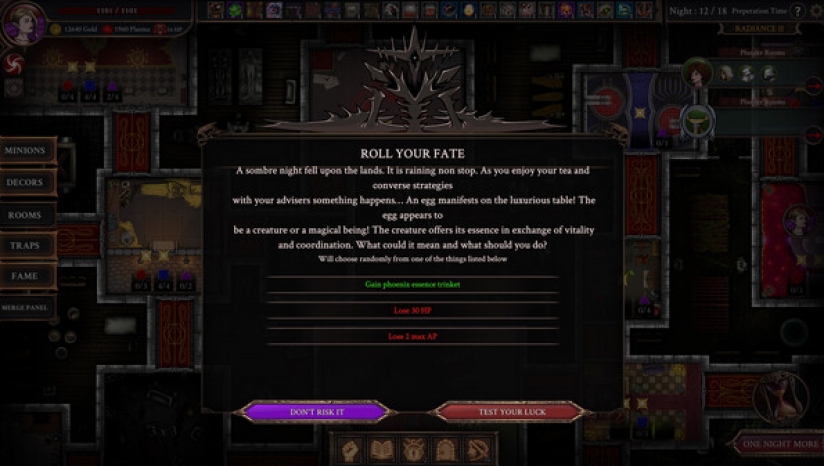 Few Nights More将城堡管理和回合制rougelike独特地融合在一起。当你不在的时候,与人类,这个世界无可争议的主人,作战。在八个不同的吸血鬼领主中做出选择,每个领主都有自己的野心和历史。一路上寻找你的装饰品、技能和能力。通过放置合适的房间、添加装饰品来设计自己的城堡,这些装饰品将直接助力你的军队和吸血鬼领主。征服更多城堡,让你的影响力和权力不断增长,直到你获得与生俱来的权利。